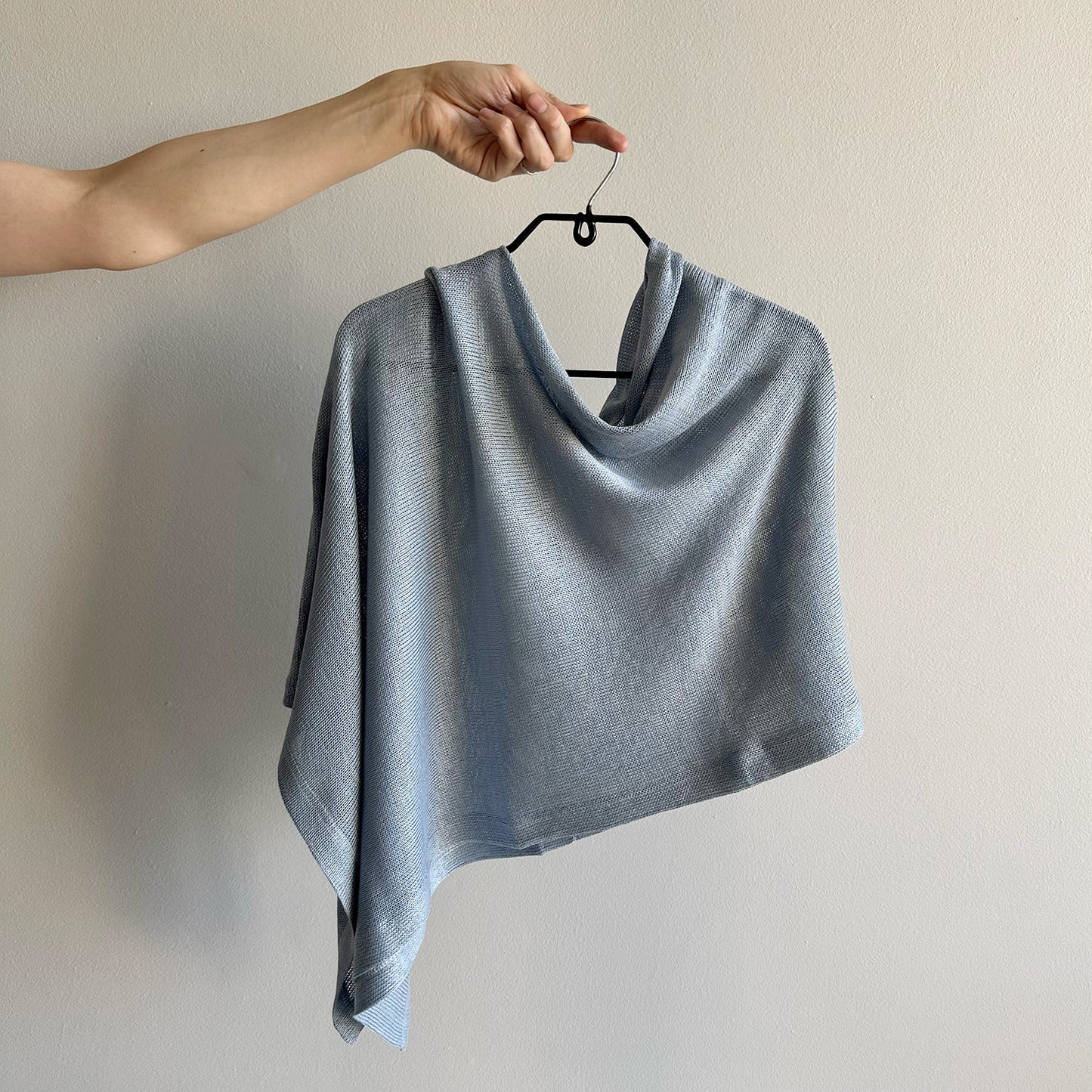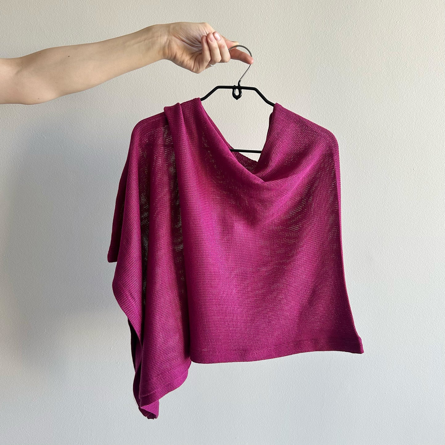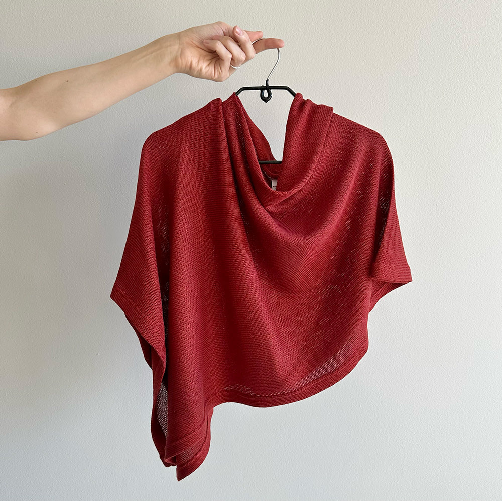 This incredibly versatile item, made in Cape Town, is light and slightly sheer, making it the perfect throw-over for cooler days. Easily dressed up or down, its unique design allows for multiple styling options simply by moving the garment around your body.