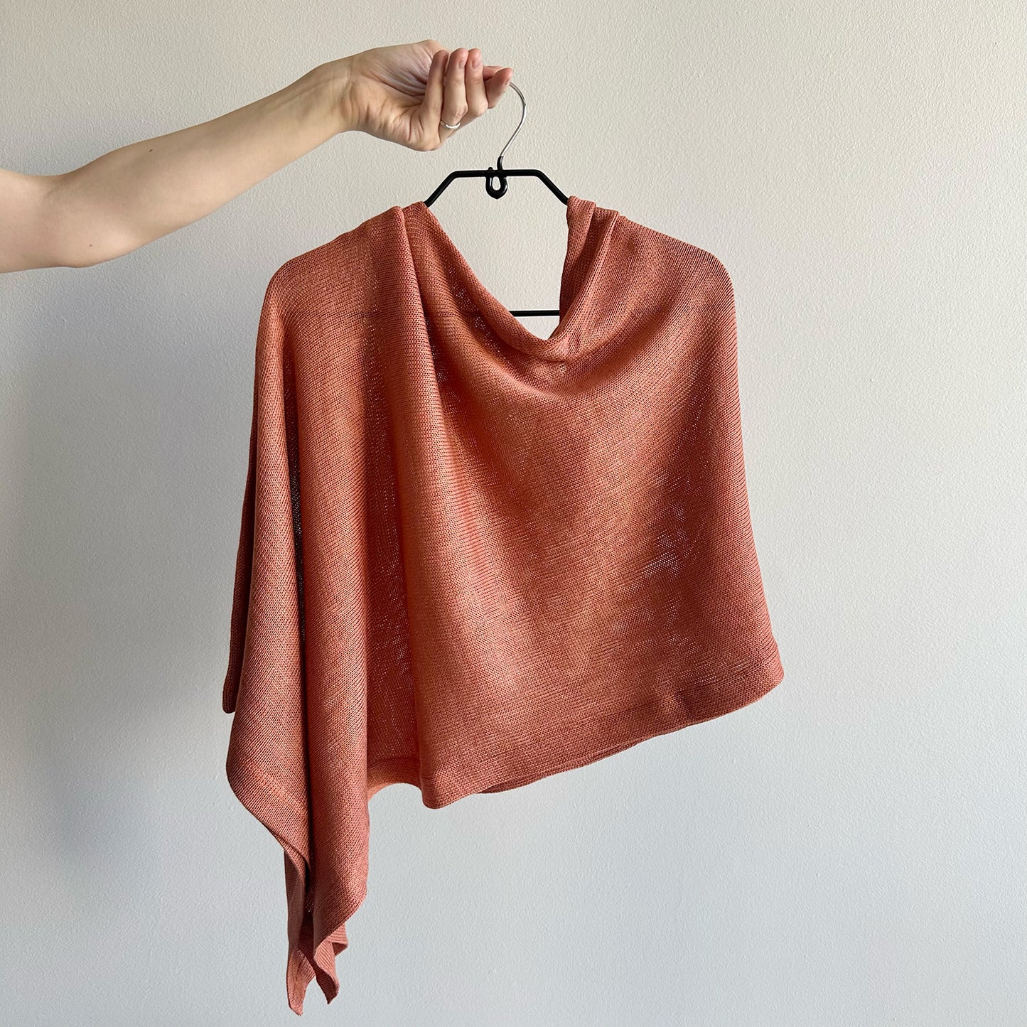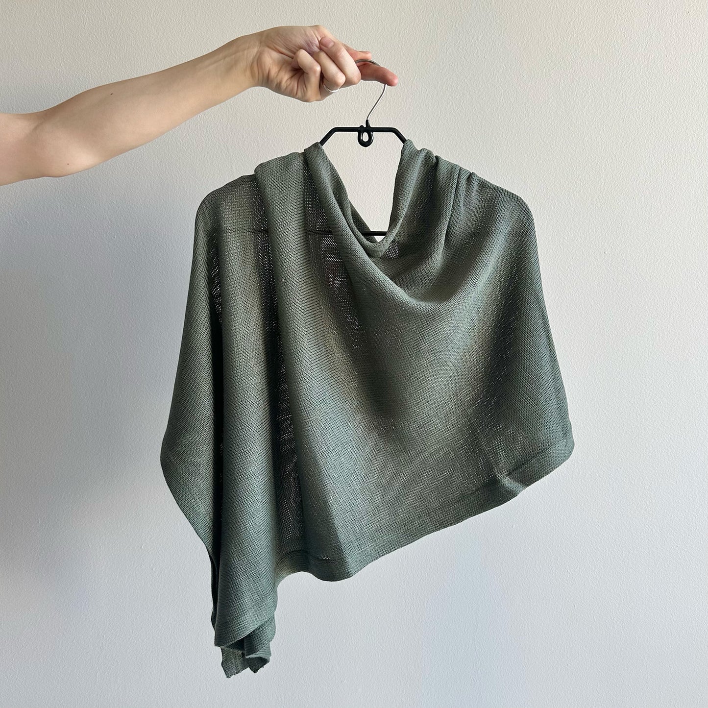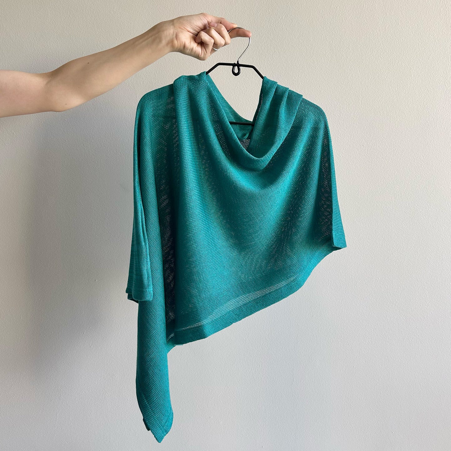 This incredibly versatile item, made in Cape Town, is light and slightly sheer, making it the perfect throw-over for cooler days. Easily dressed up or down, its unique design allows for multiple styling options simply by moving the garment around your body.