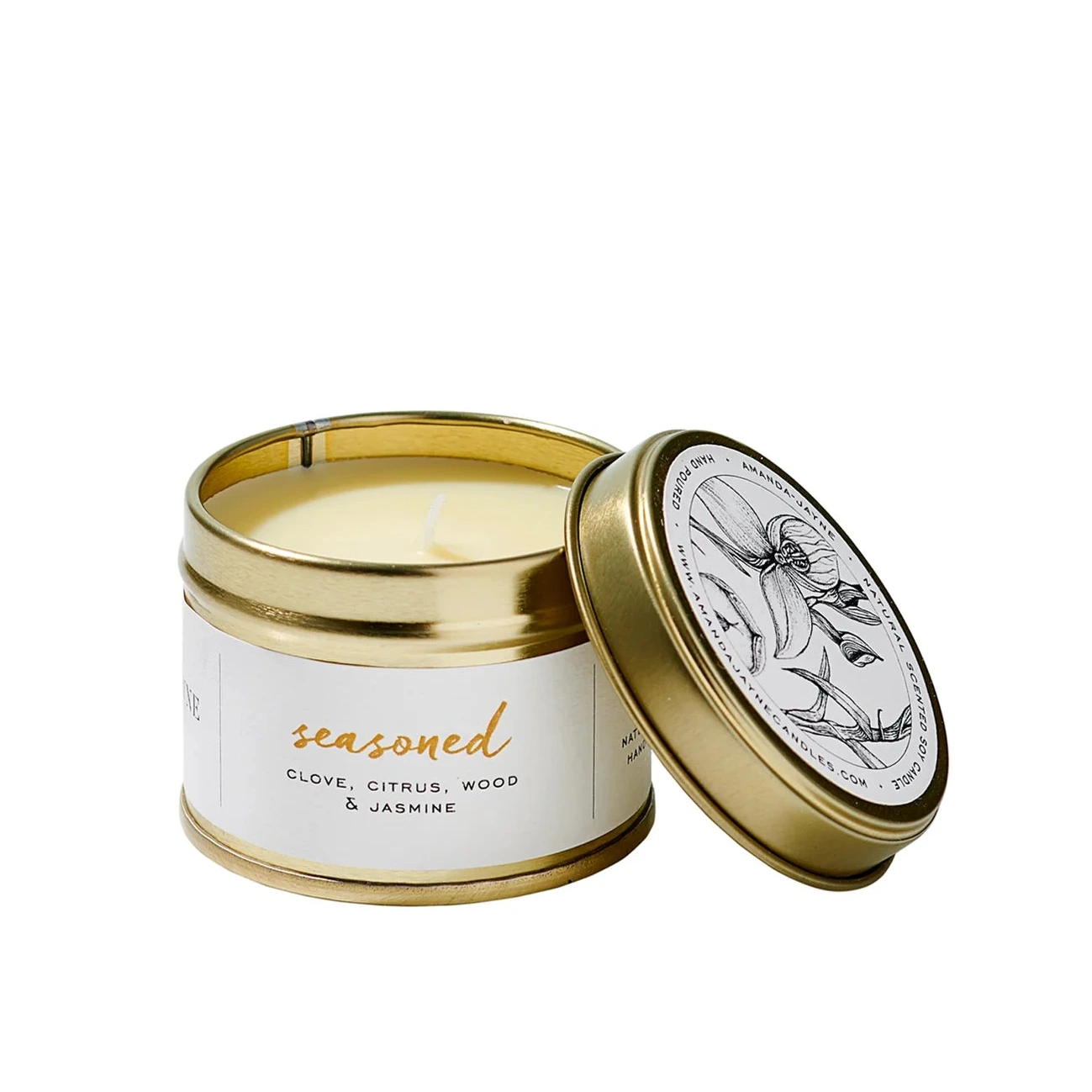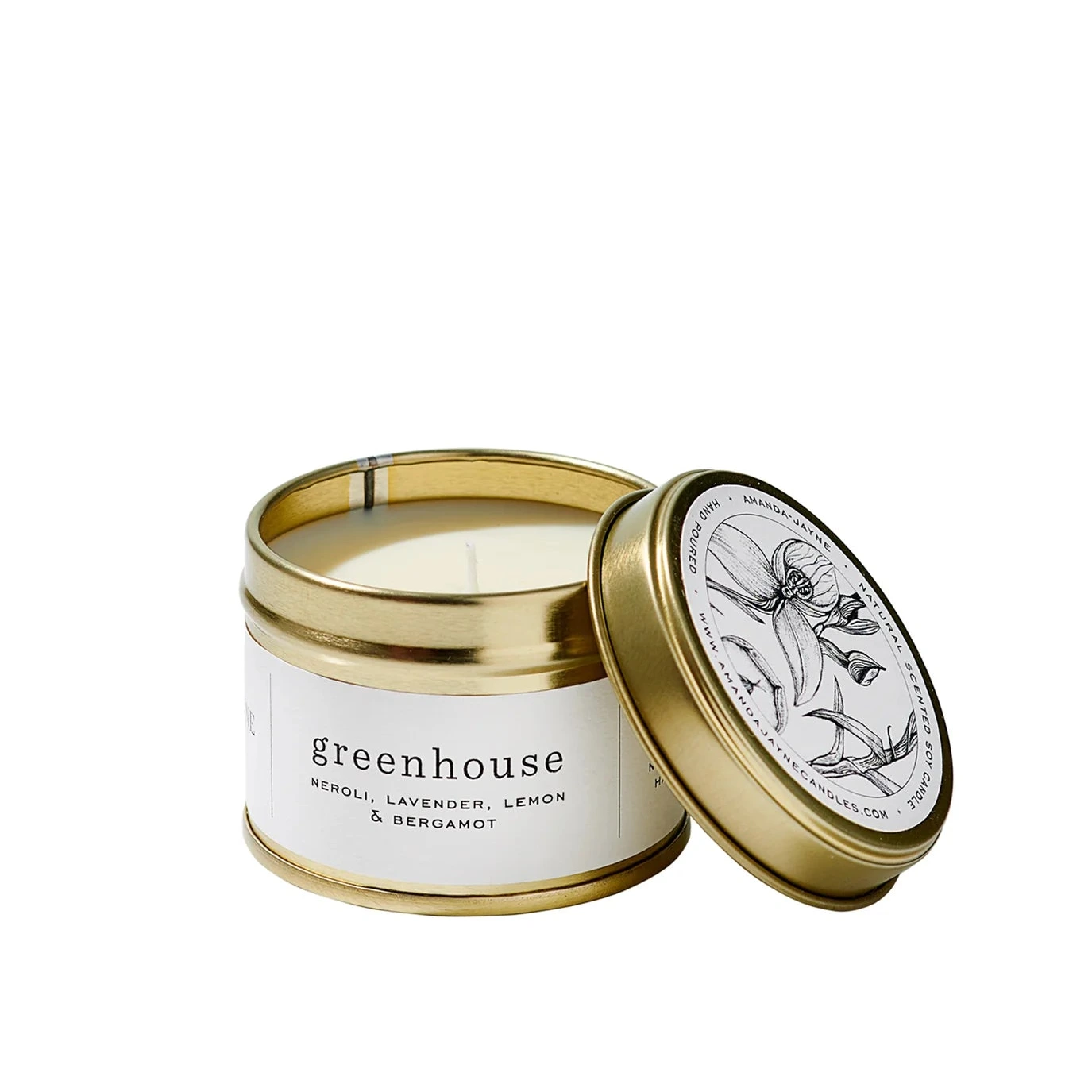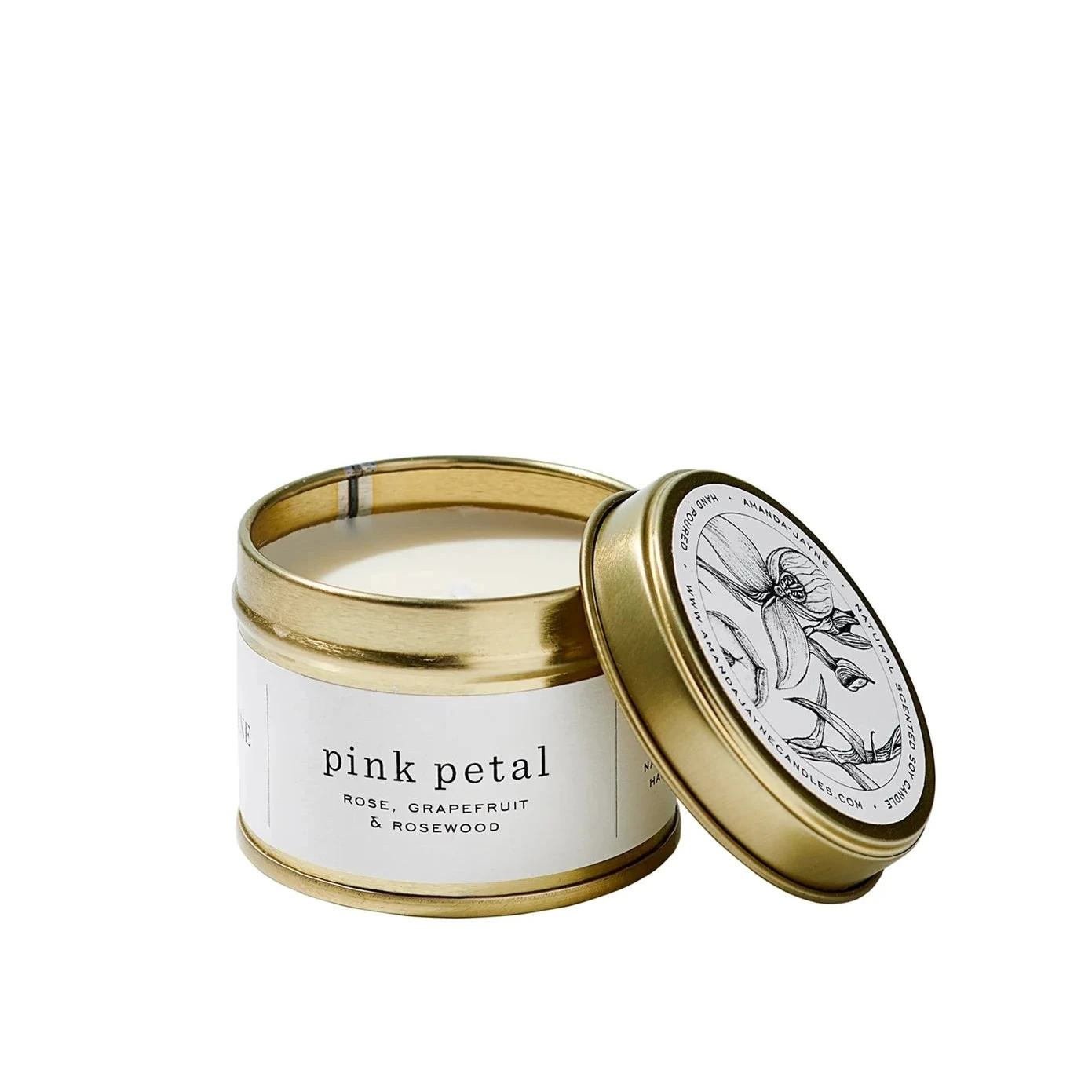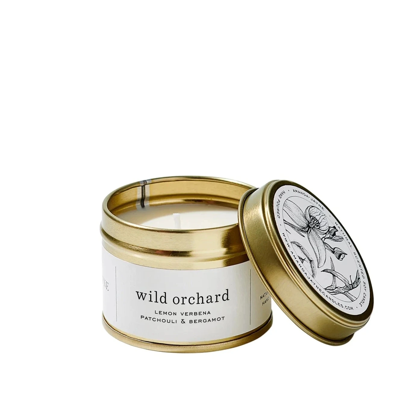 Housed in a refined gold tin with a secure lid, these 20-hour burn candles are designed for durability and ease of transport and provide a soulful way to carry the essence of nature on any journey or to scent smaller, intimate spaces.