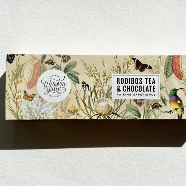 Embark on a remarkable sensory journey with the Winston & Julia Rooibos Tea & Chocolate Pairing Set. This exquisite experience is designed to let the gentle notes of rooibos tea elevate and accentuate the unique flavours of each luxurious chocolate, creating a delightful dance for your palate.