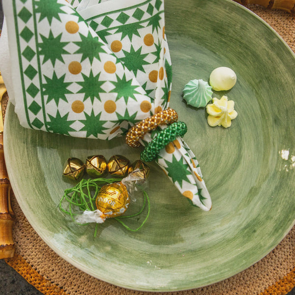Set a festive and elegant table with our Christmas Star serviettes. This pack of 25 biodegradable paper napkins features a stunning geometric pattern in rich green and shimmering gold, perfect for holiday celebrations.